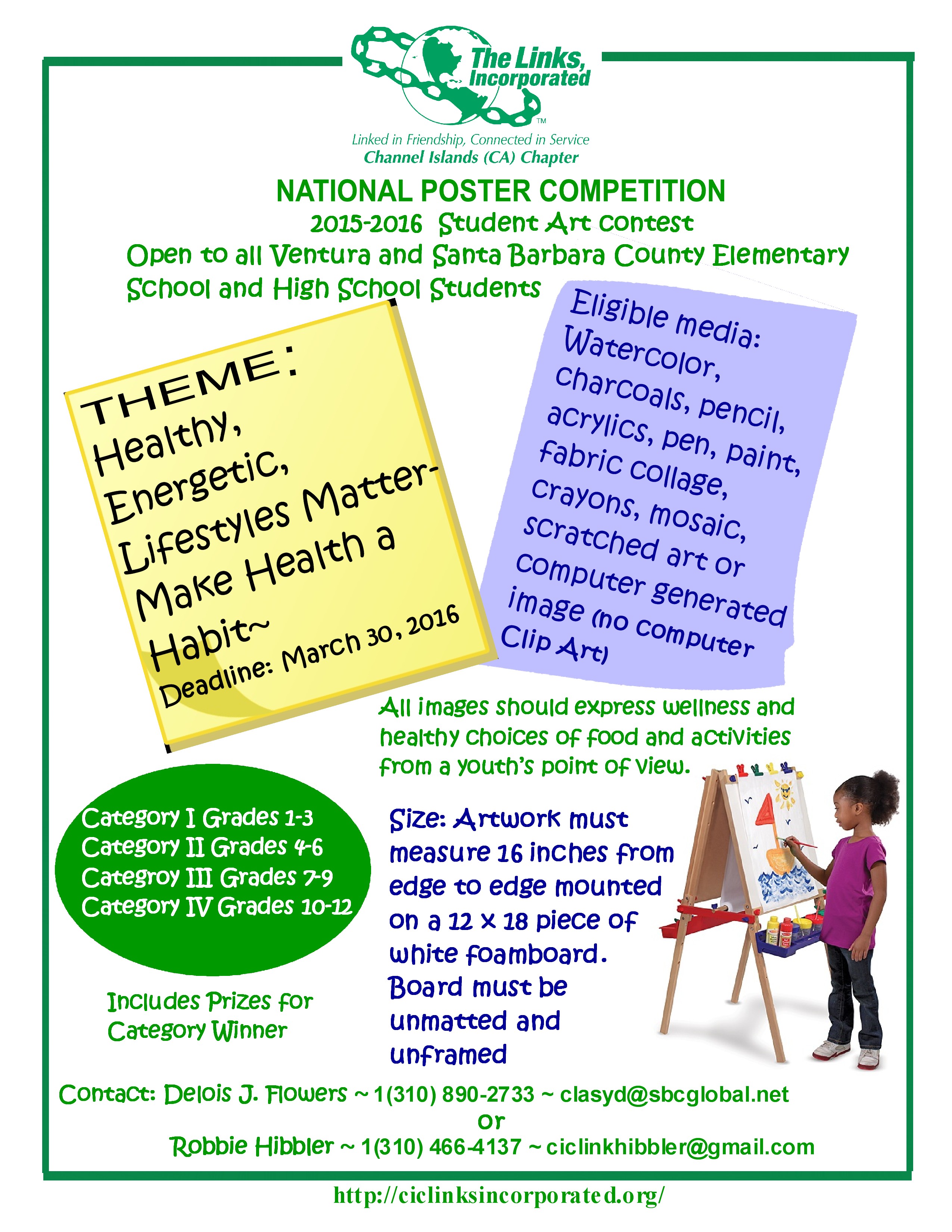 The Channel Islands Chapter, Links Incorporated will be hosting our organization’s Art Poster Competition form February 20, 2016, to March 30, 2016. As part of our National Organization’s Art Poster Contest this year, the competition is open to all Ventura and Santa Barbara County Elementary through High School students.